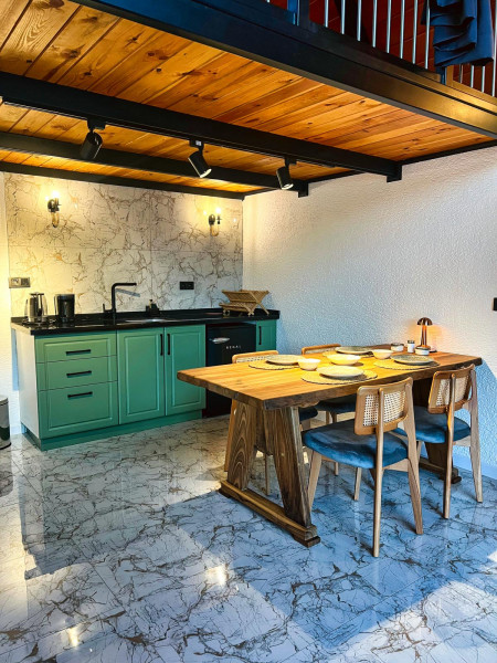 Kendi yemeğinizi hazırlamak isteyen misafirlerimiz için tam donanımlı mutfağımız hizmetinizdedir. Dilerseniz açık alandaki barbekü alanımızda etinizi ve kömürünüzü getirerek mangal keyfi yapabilirsiniz.